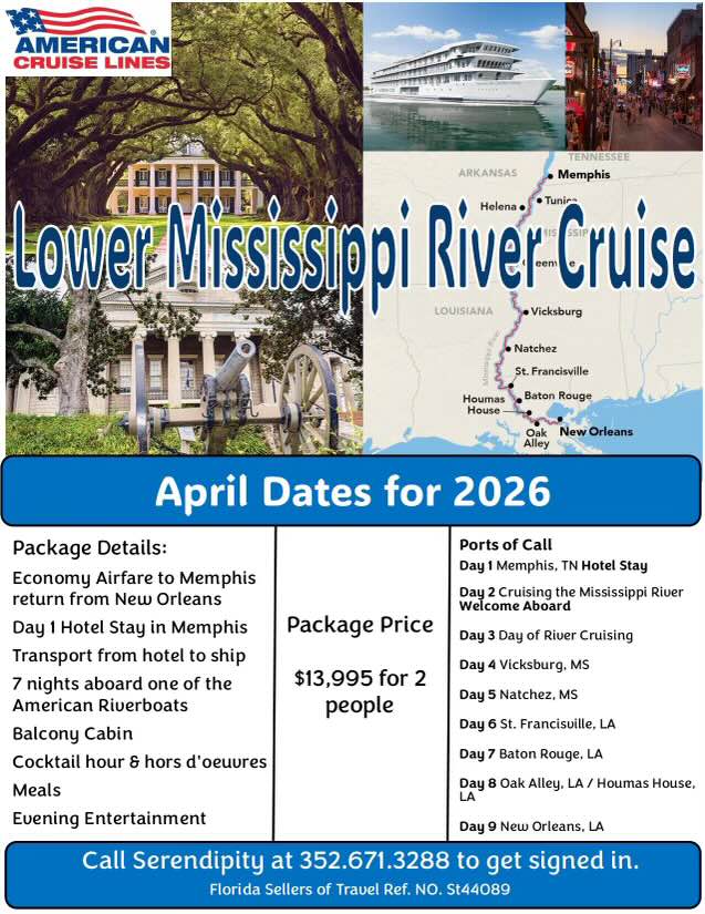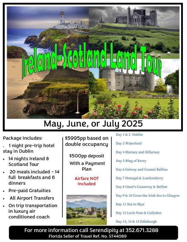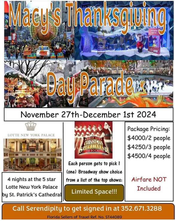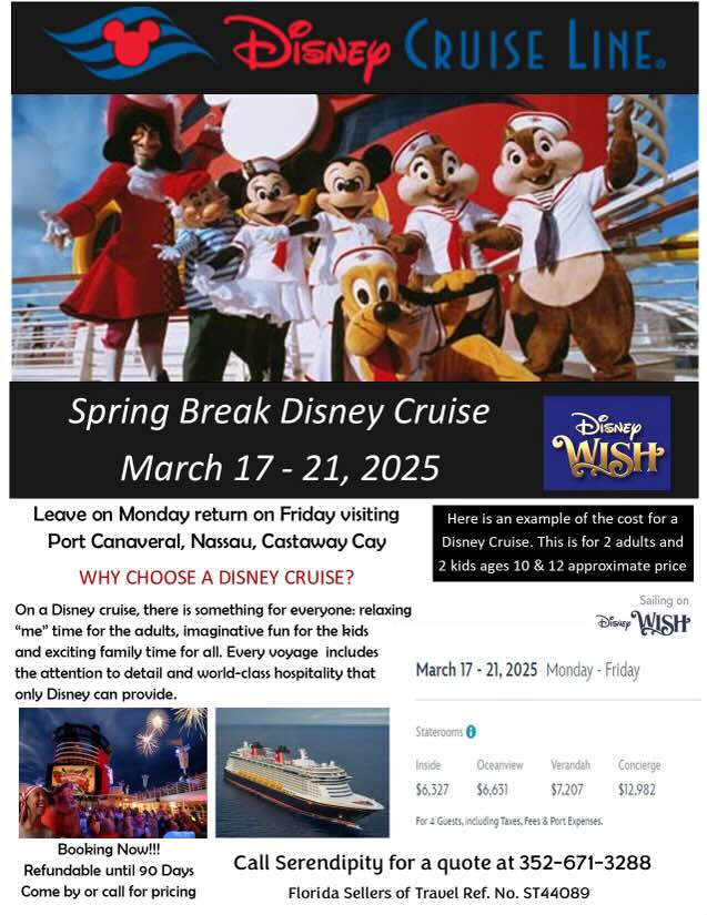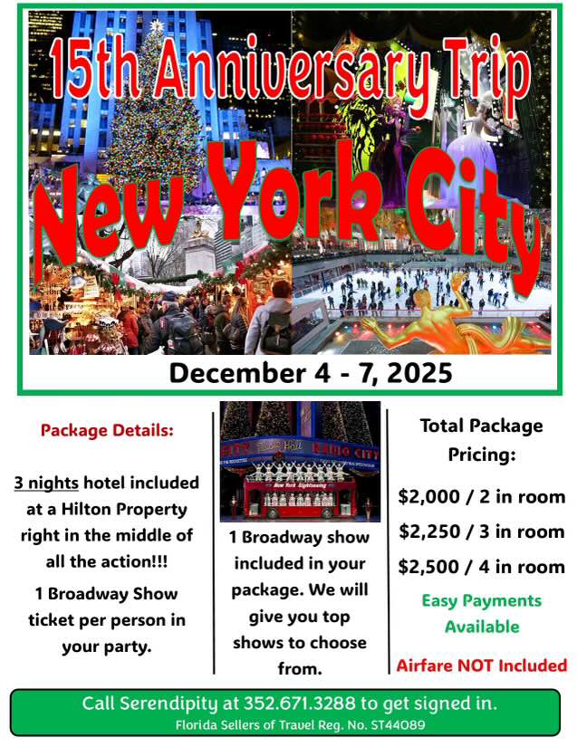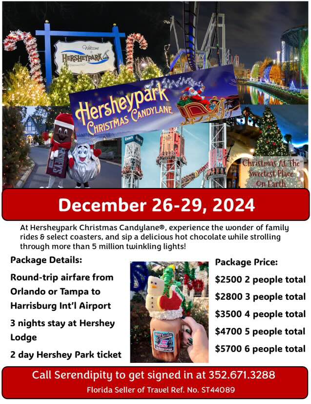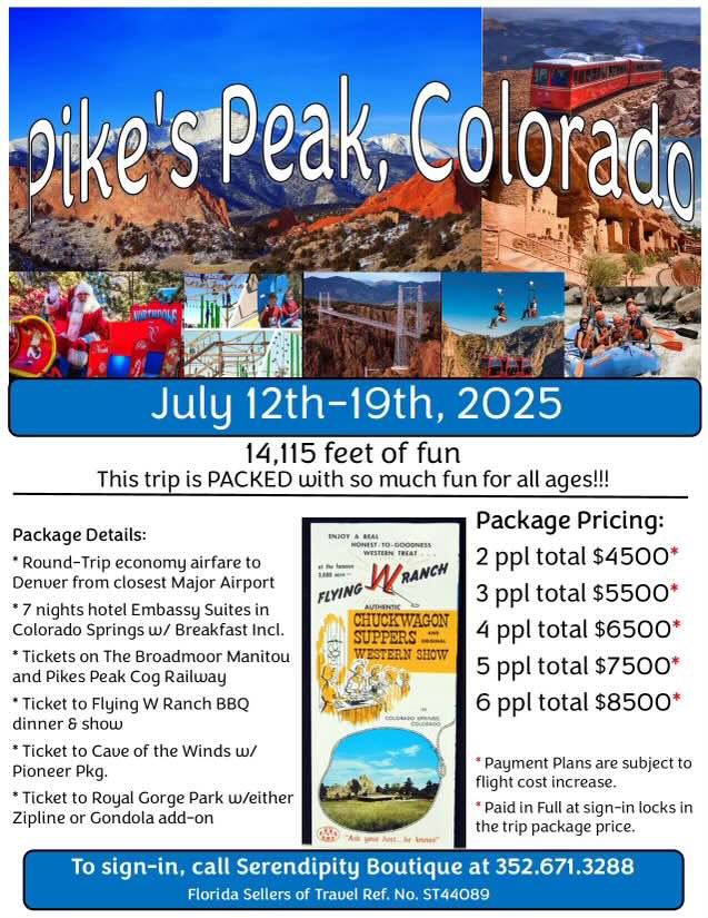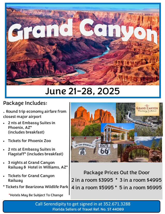 Call the store with any questions and to sign in at 352-671-3288. Payment plans available on all trips!