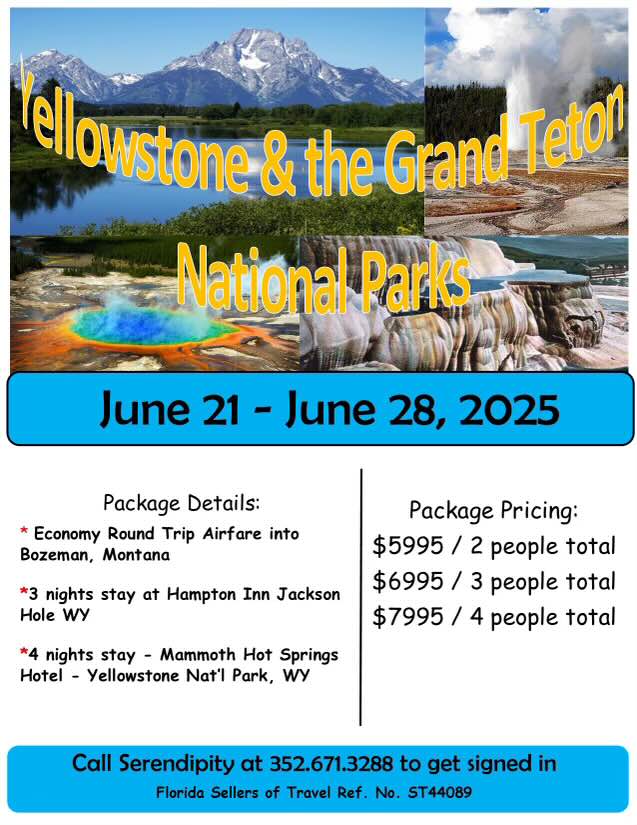 Yellowstone & the Grand Teton National Parks June 21st-28th, 2025