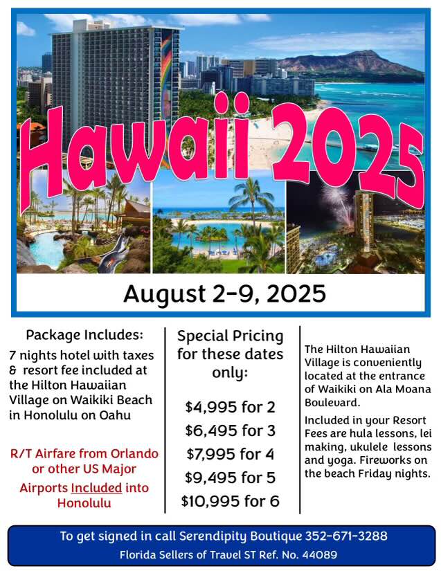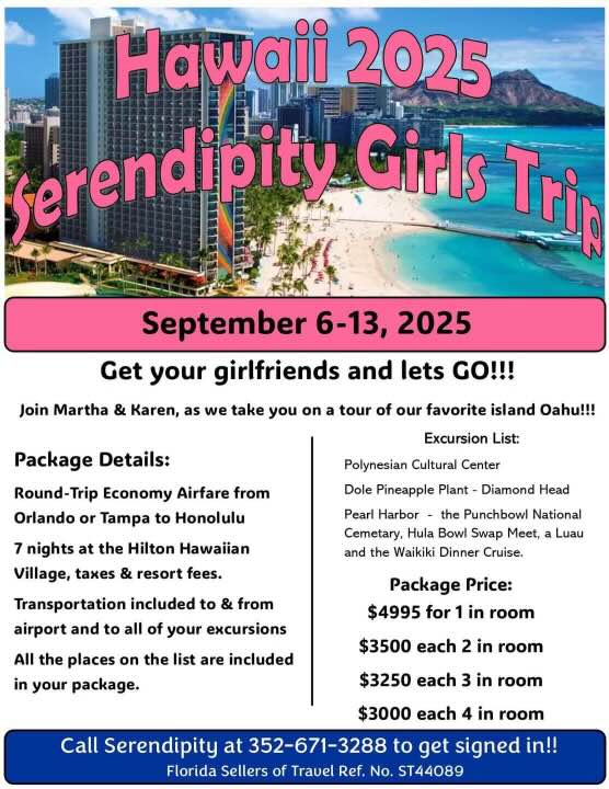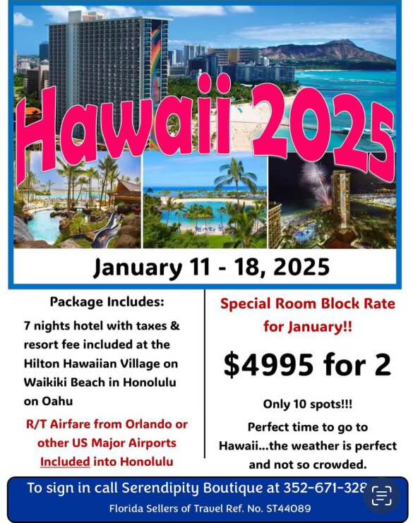Hawaii Serendipity Girls Trip September 6th-13th, 2025