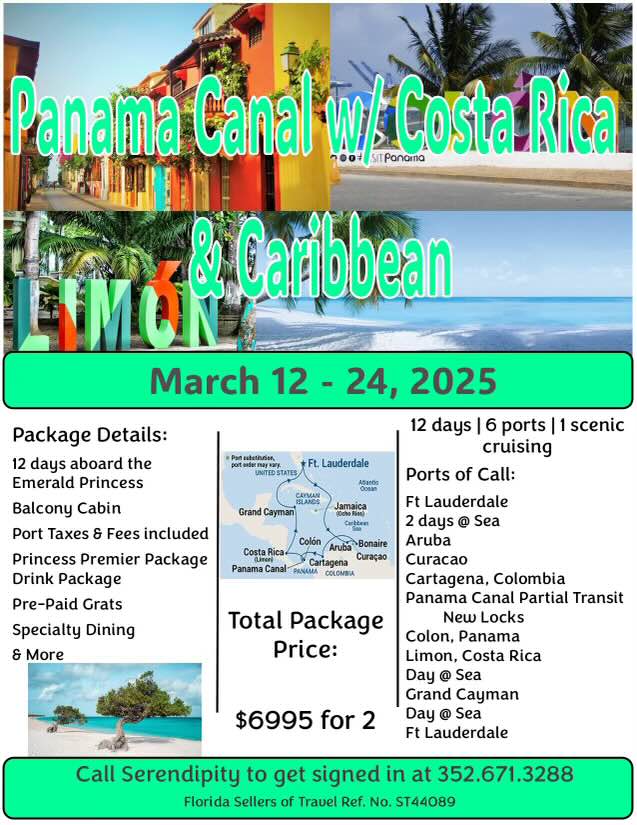 Panama Canal w/ Costa Rica & Caribbean March 12th-24th, 2025