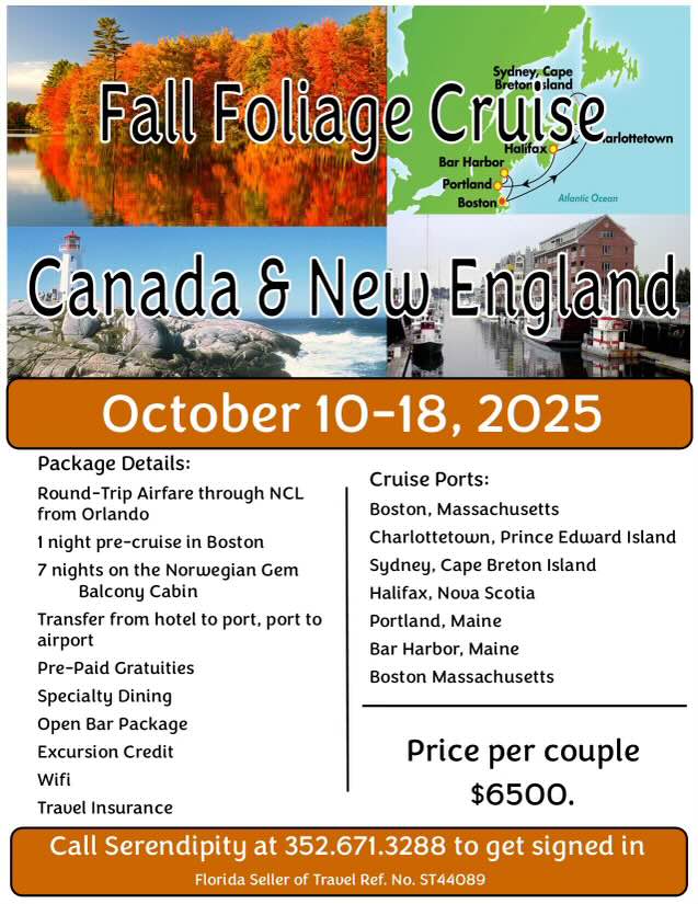 Fall Foliage Cruise Canada & New England October 10th-18th, 2025