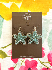 Inform when this item available Rain Gold & Blue Beaded Flower Earrings